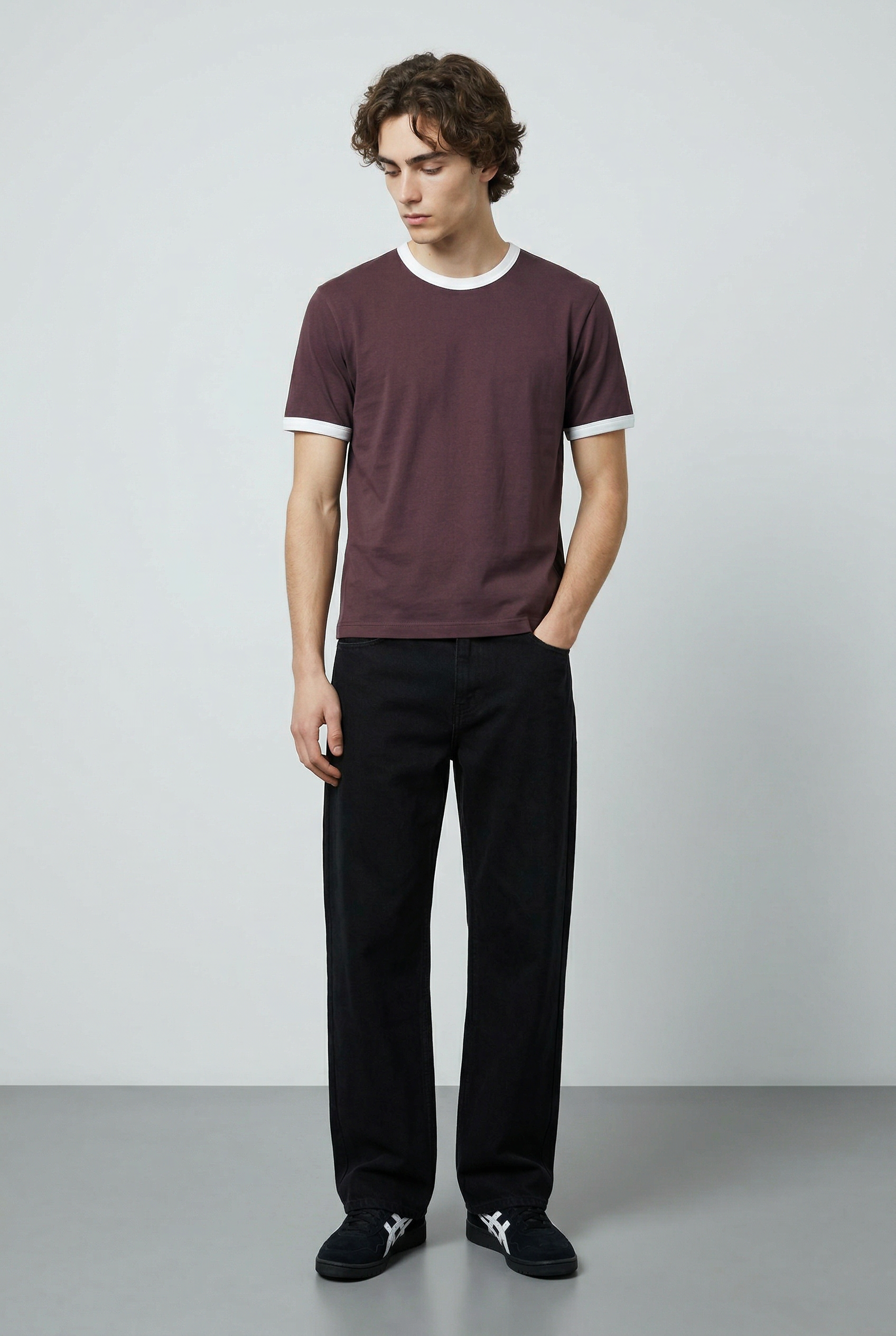 Slip into ease with this crew-neck T-shirt crafted from soft, lightweight jersey fabric. It features contrast trim at the neckline, sleeves for a subtle accent. With its relaxed half sleeves and straight-cut hem, it balances casual appeal and clean structure.