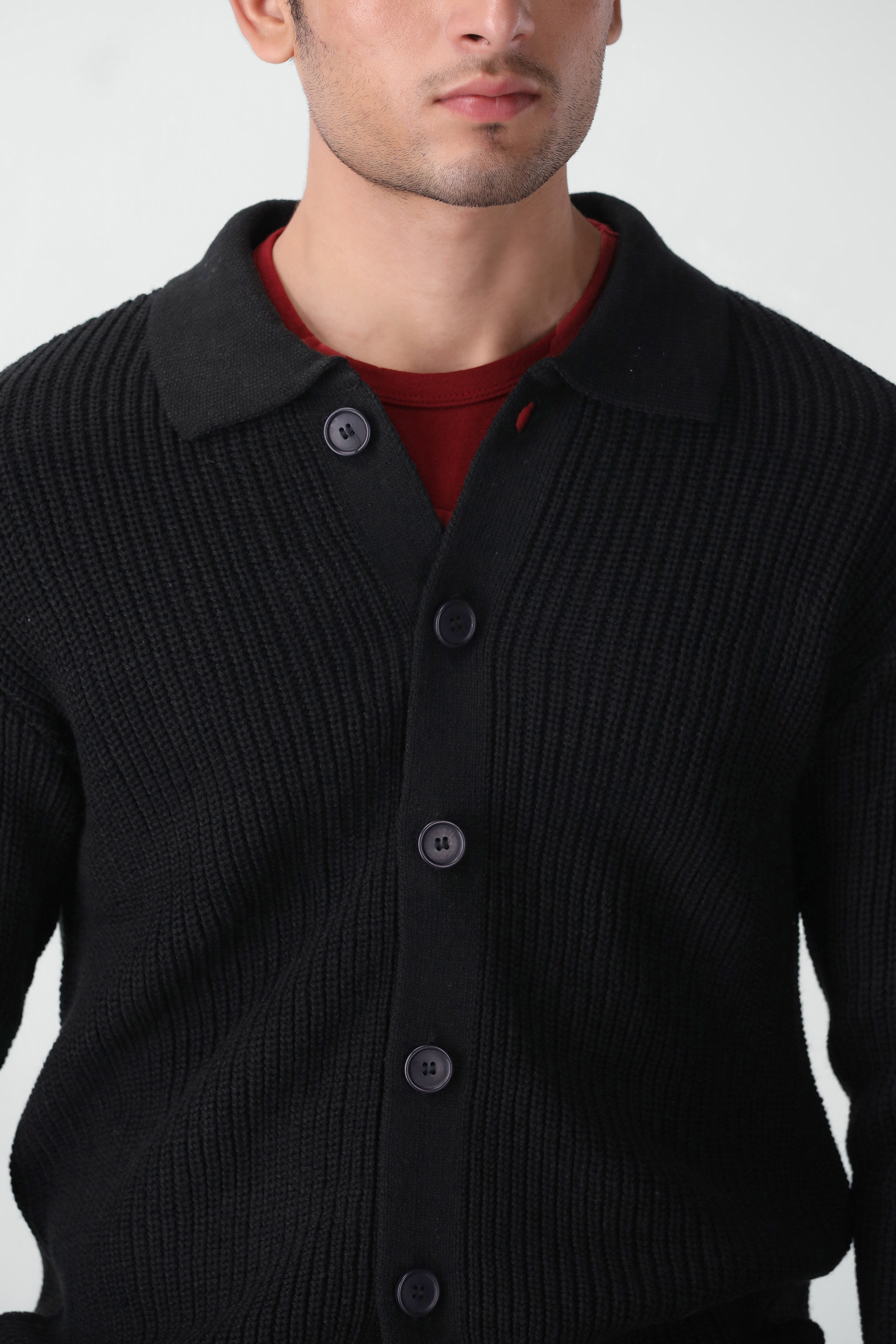 Refined yet cozy, this collared cardigan jumper is crafted in chunky knit with a buttoned front for easy layering, with ribbed cuffs & hem.