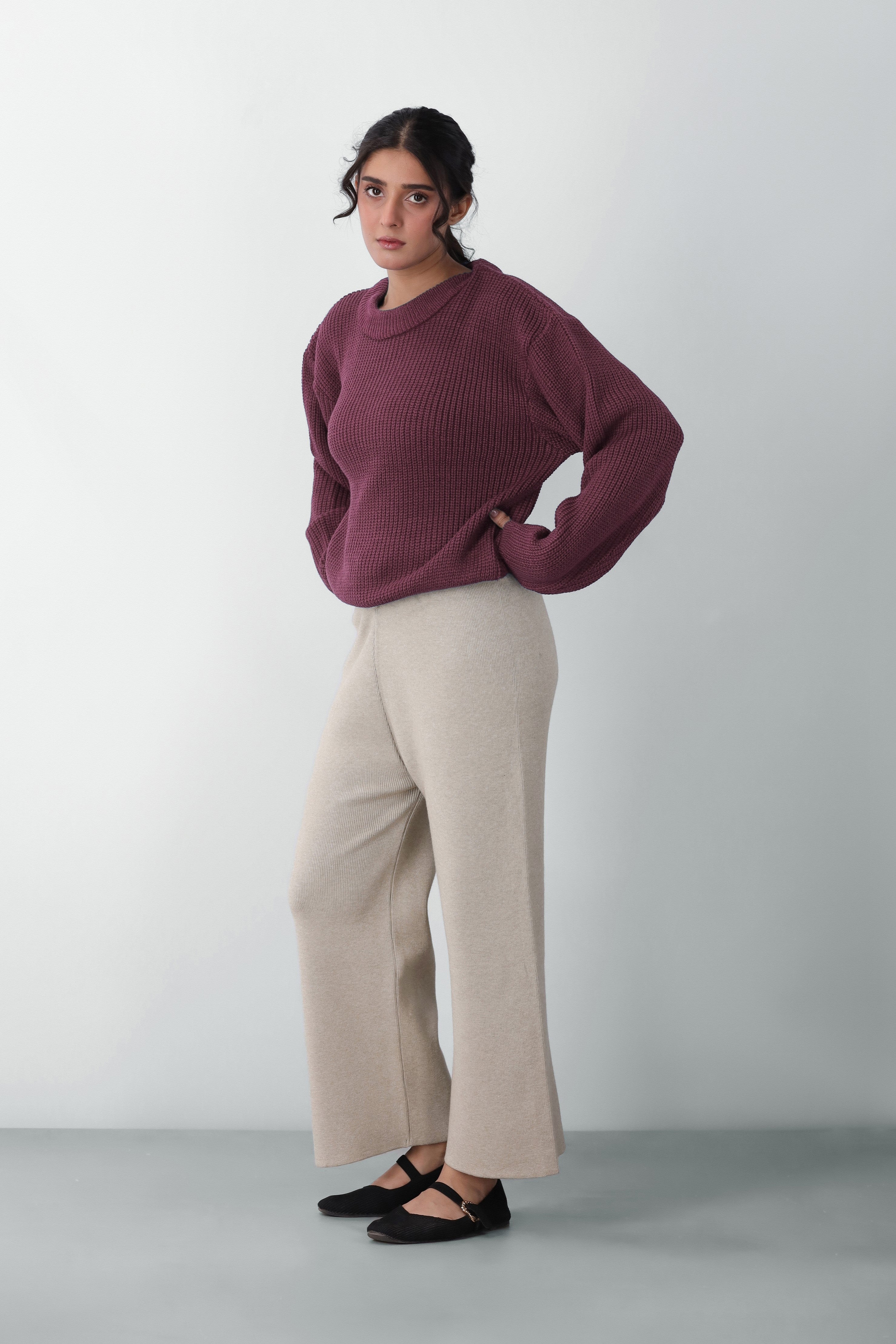 Soft and easy to wear, this short loose-fit sweater is crafted in chunky knit for a cozy hand feel. Designed with a classic crew neckline, long sleeves, and ribbed trims at the neck, cuffs, and hem for a neat finish.