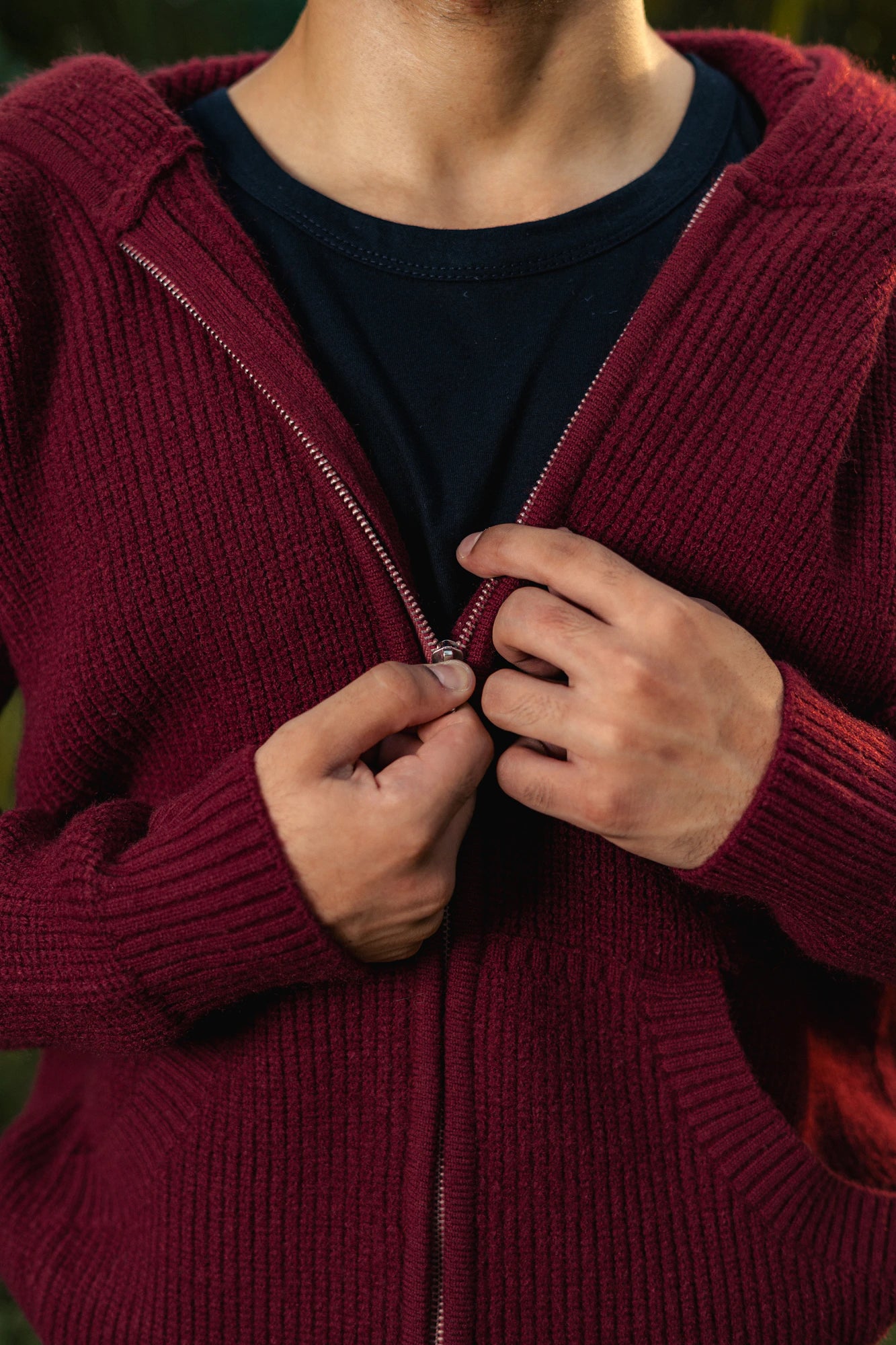 Stay effortlessly warm in this knitted zip-up hoodie, crafted in chunky knit for a cozy feel and structured look. Designed with a clean hood, front kangaroo pockets, and snug ribbed cuffs and hem, it’s the perfect balance of comfort and versatility.
