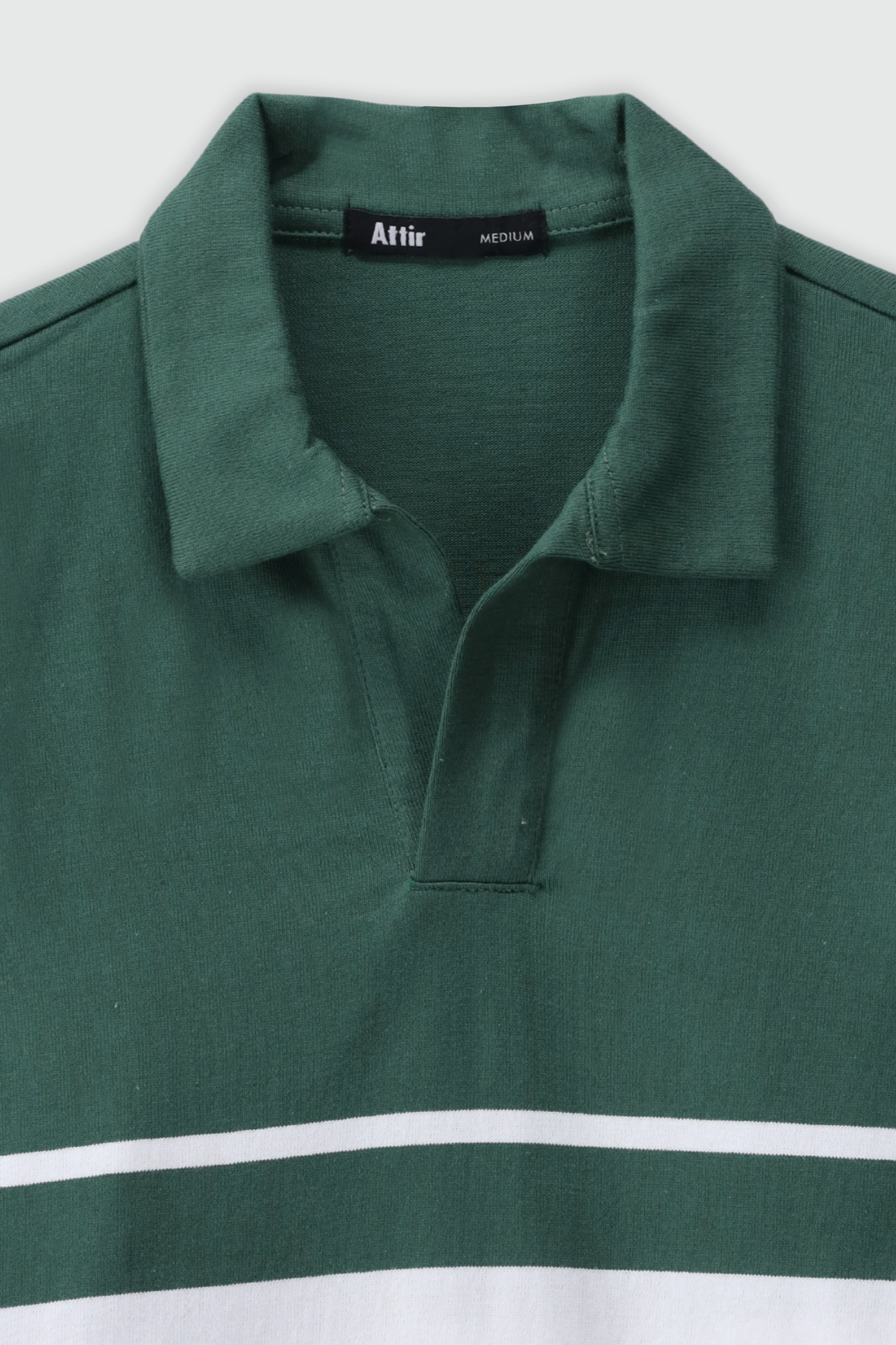 Boat Neck Dress with Ruched Sides in Bottle Green