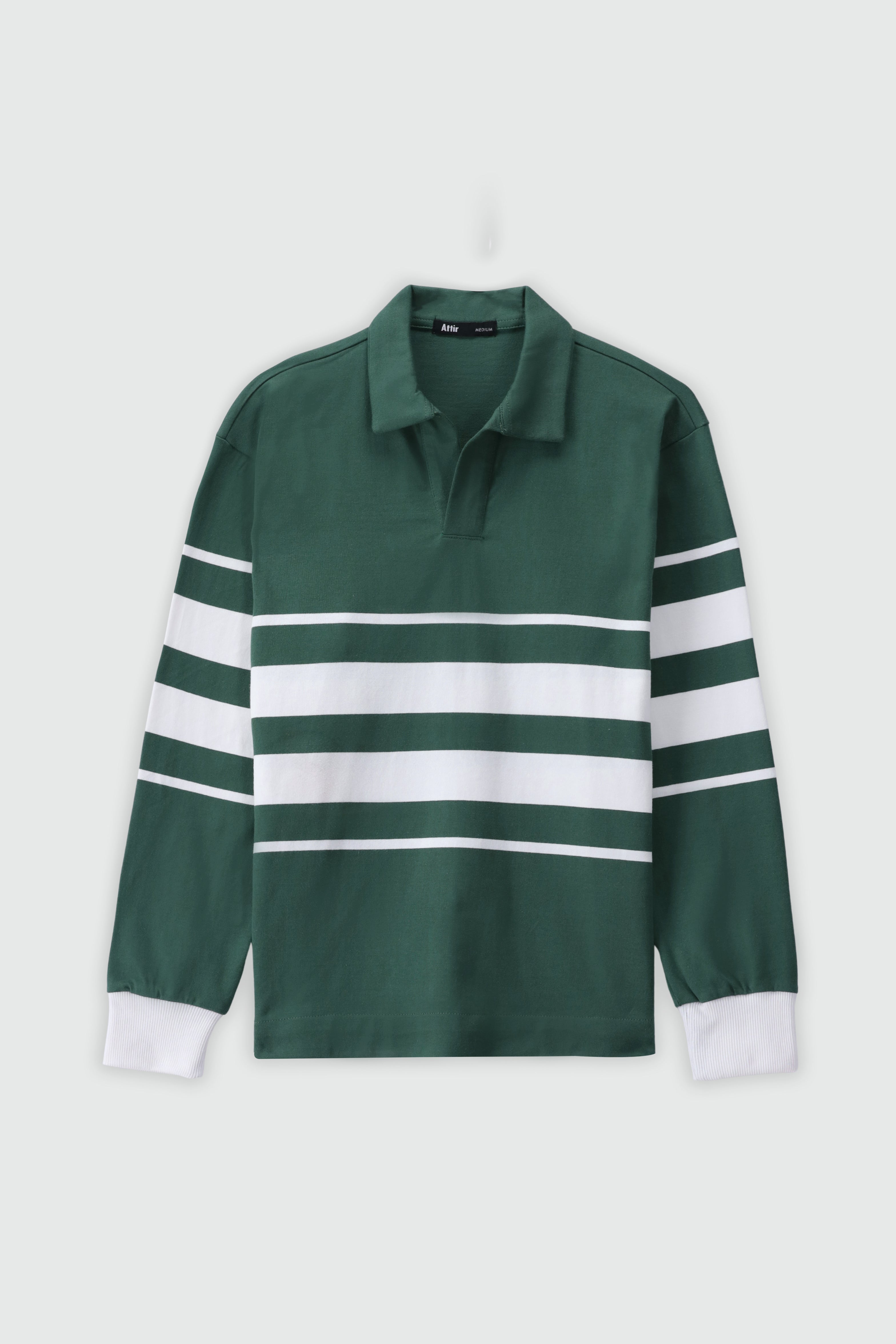Effortlessly sharp and comfortable, this striped polo jumper features an open revere collar with soft interlining, a V-shaped front opening, and long sleeves with ribbed cuffs. The straight-cut hem and side vents allow for easy movement, while the fine knit delivers a smooth, refined drape. Perfect for layering or wearing on its own for smart-casual ease.