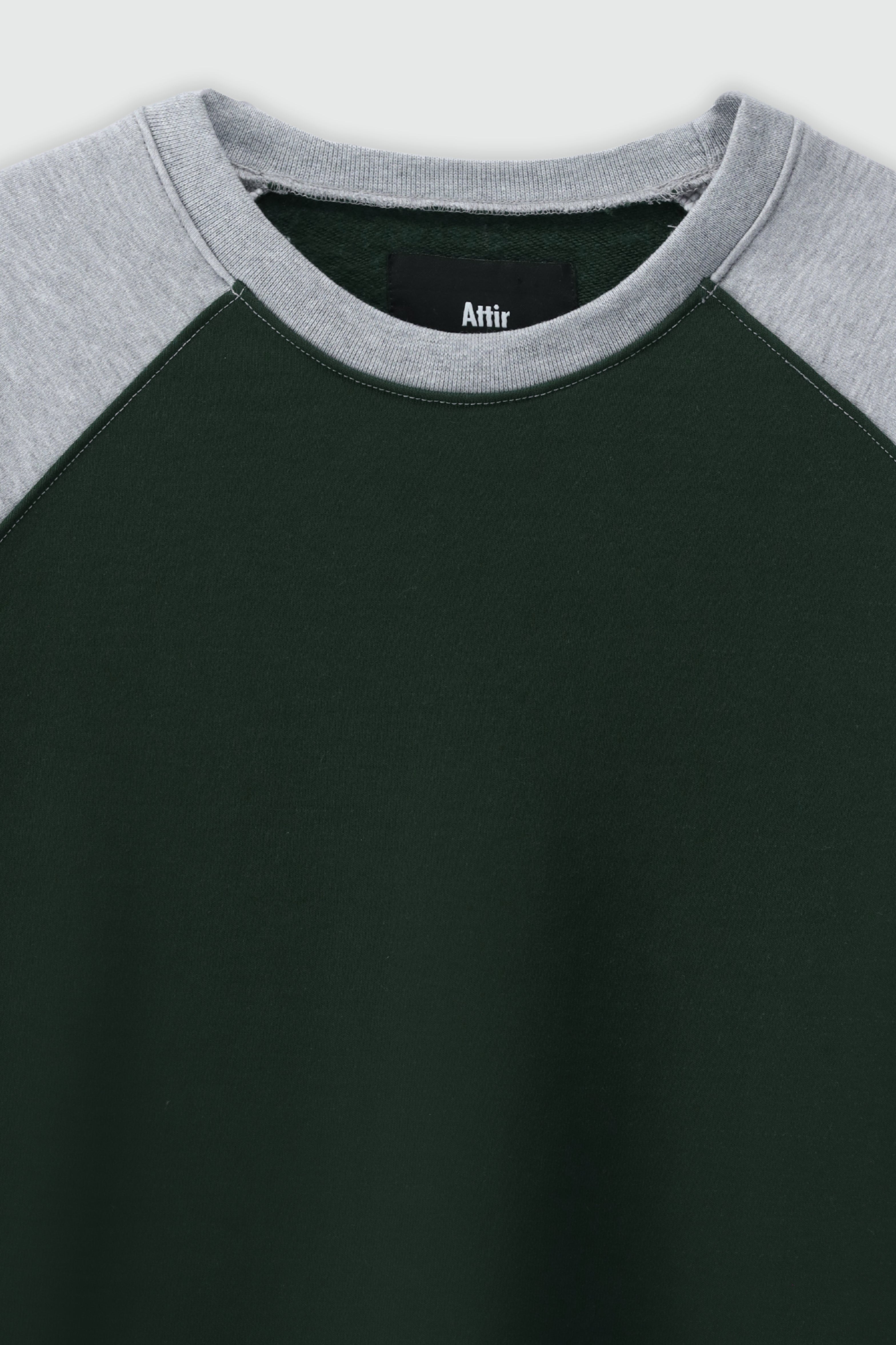 Contrast Sleeve Raglan Sweatshirt in Dark Green