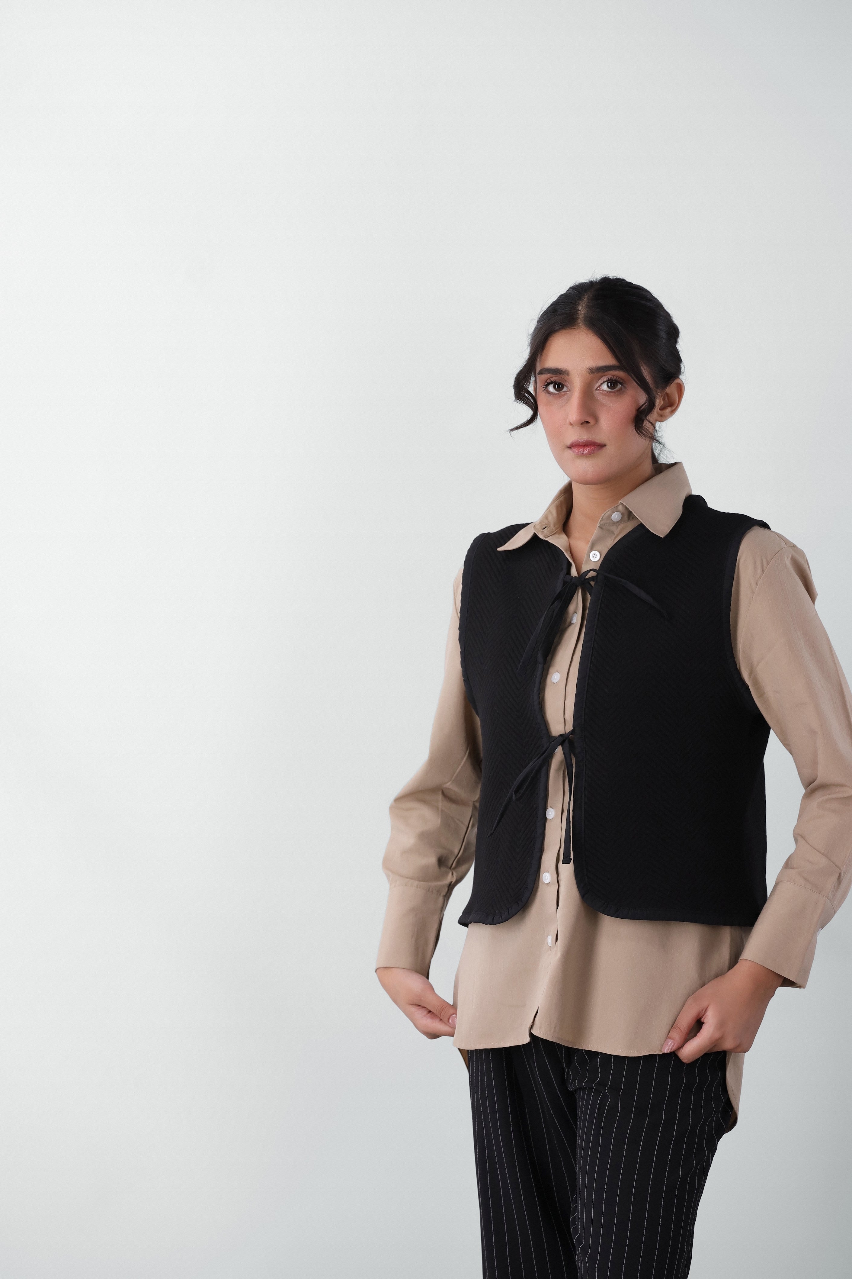 Quilted Gillet with Tie Detail in Black
