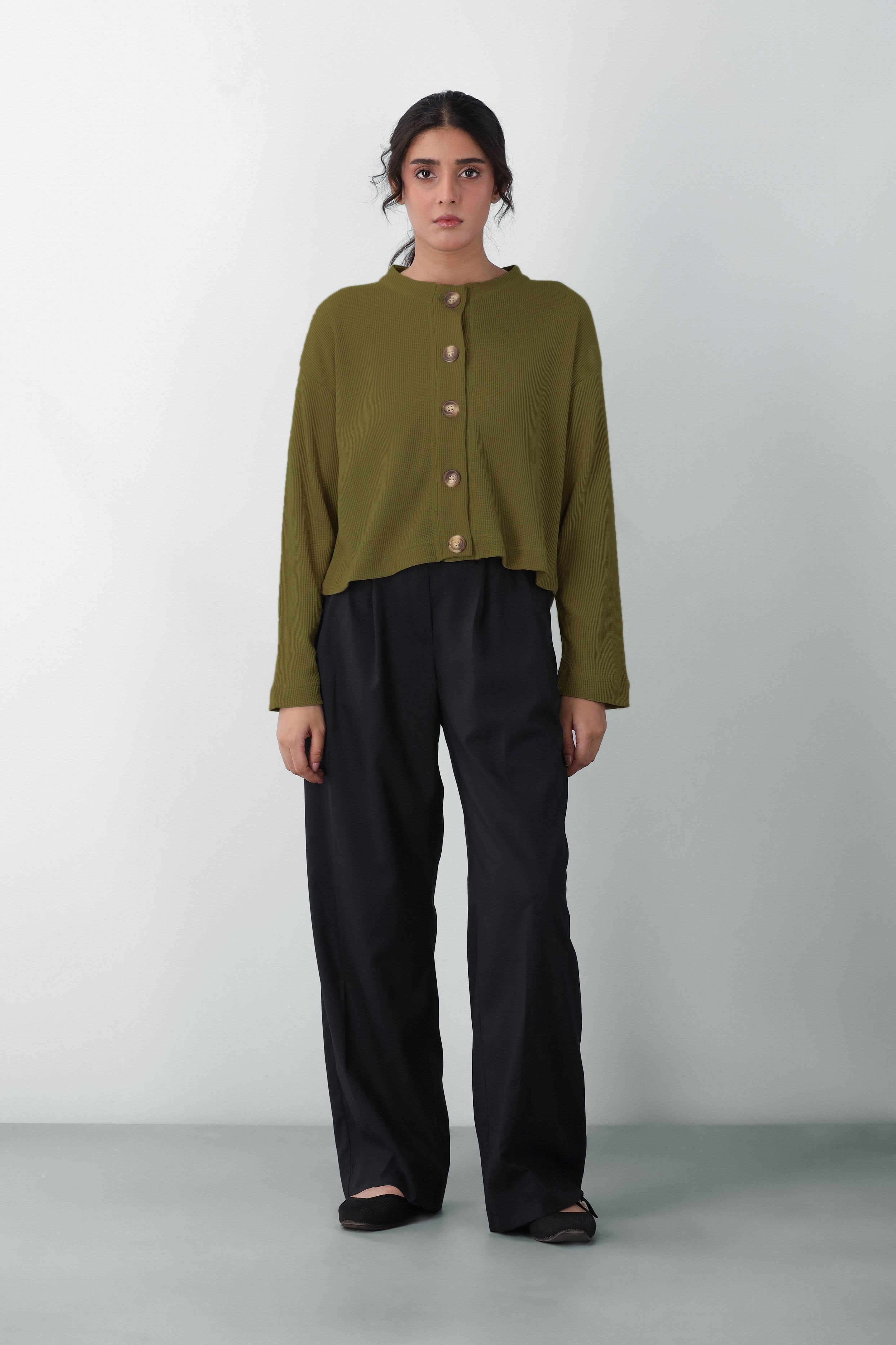 Casually cool meets cozy texture in this waffle knit boxy cardigan. Featuring a round neckline, prominent front buttons, long sleeves, narrow cuffs, and slightly dropped shoulders—all wrapped in a cropped fit that layers perfectly over any outfit.