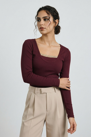 Perfect Fit Long Sleeves T-shirt in Maroon