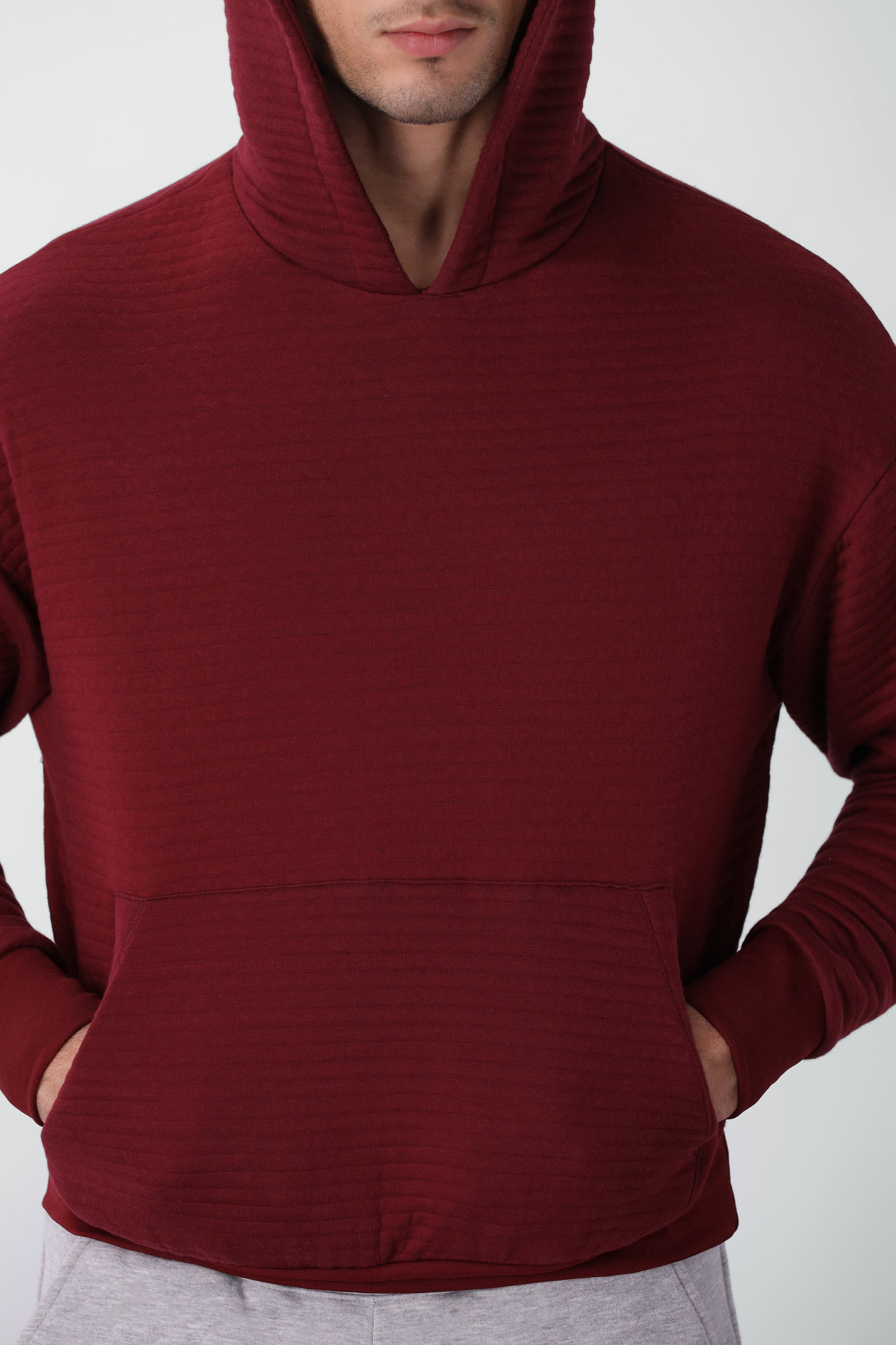 Parallel Quilted Oversized Hoodie in Red