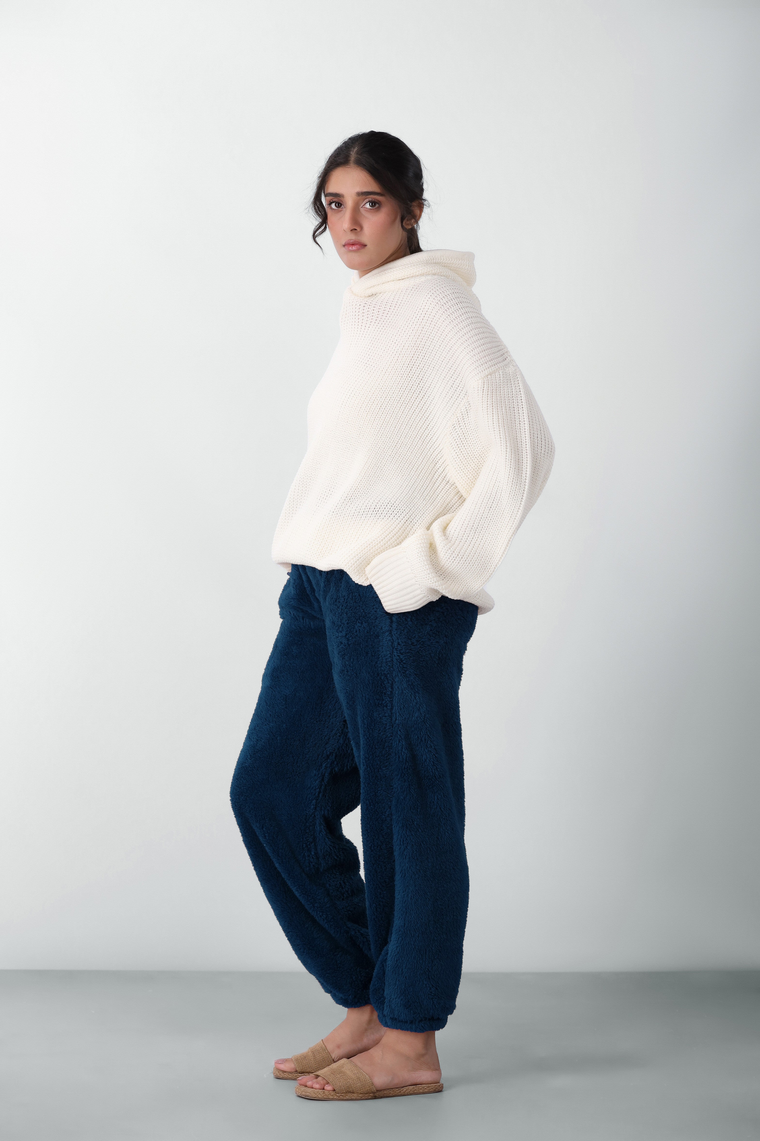 Winter lounge bottoms crafted in plush faux-fur, featuring an elastic waistband, cuffed hem and handy side pockets for everyday ease.
