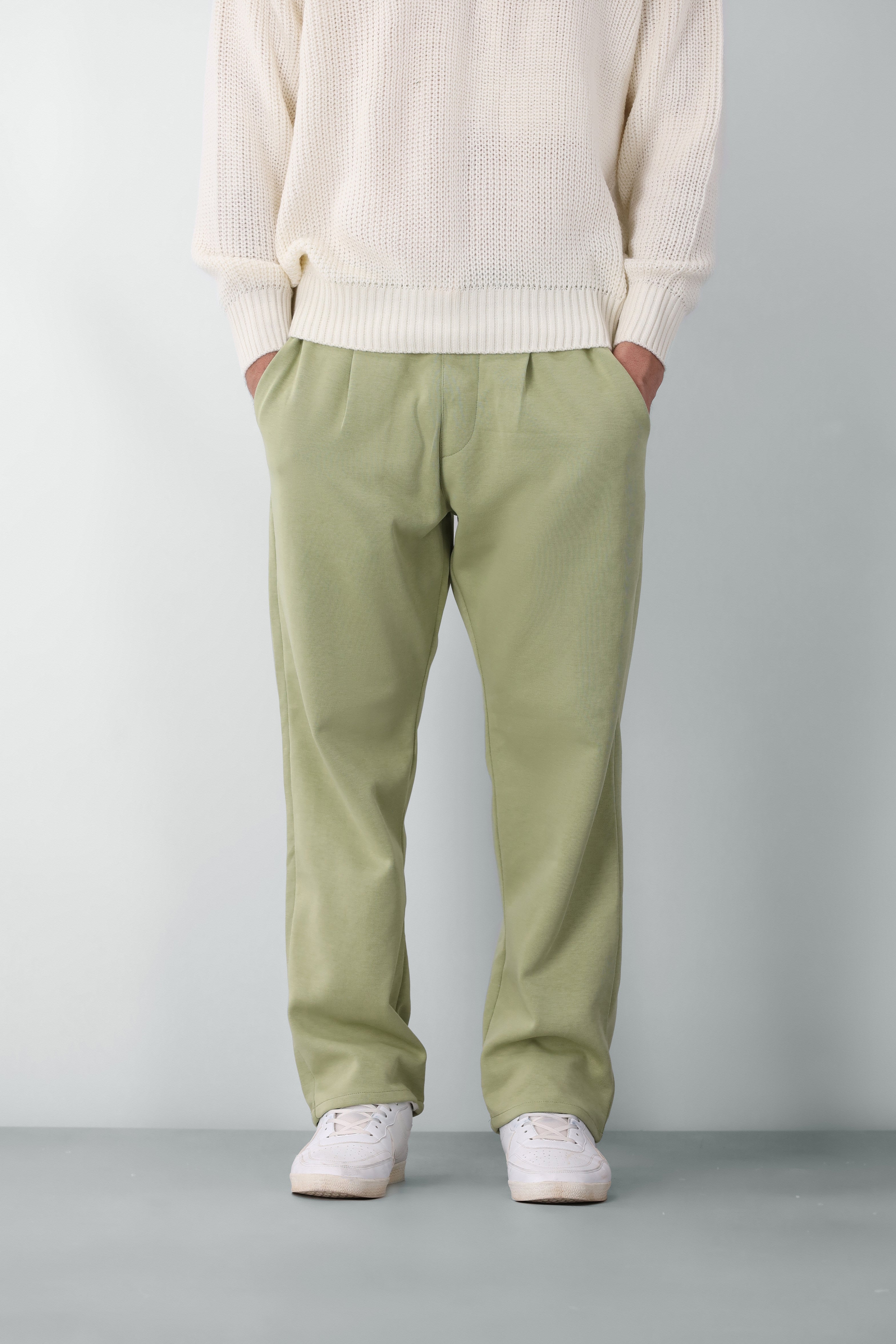 Casual Pleated Wide-leg Trouser in Matcha Green