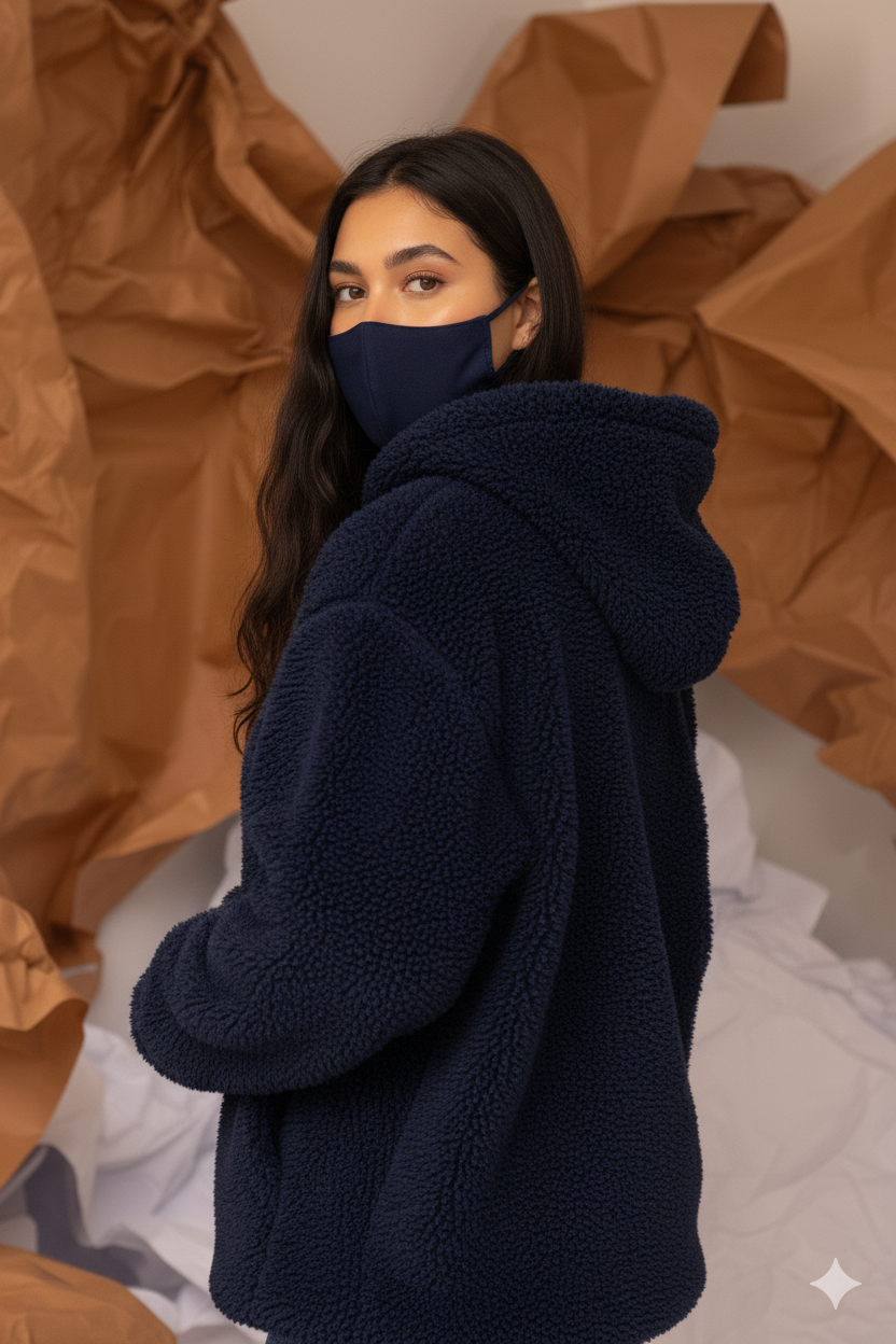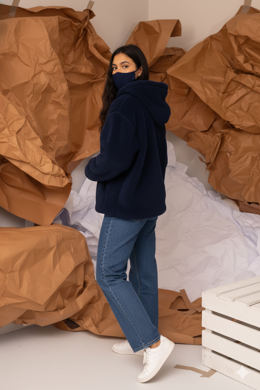 Hoodie in Sherpa fur fleece, heavily dropped shoulders, long sleeves, & elasticated cuffs and bottom. The perfect silhouette for a comfortable and cozy wear. Lined.